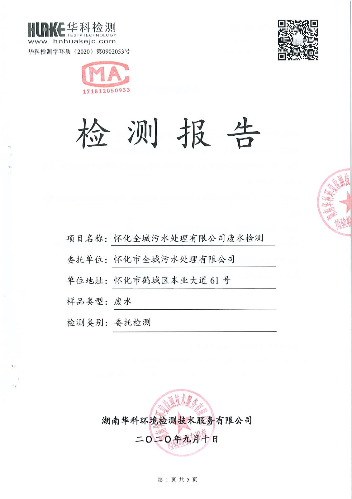 湖南怀德检测技术有限公司 2025年10月 出水水质检测报告