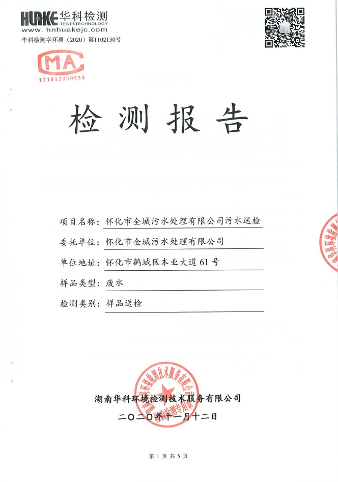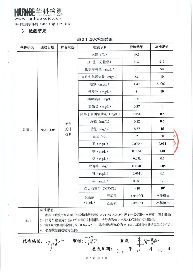 华科检测 2020年11月污水检测报告